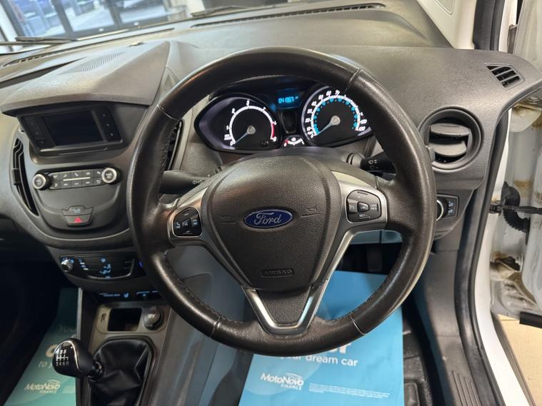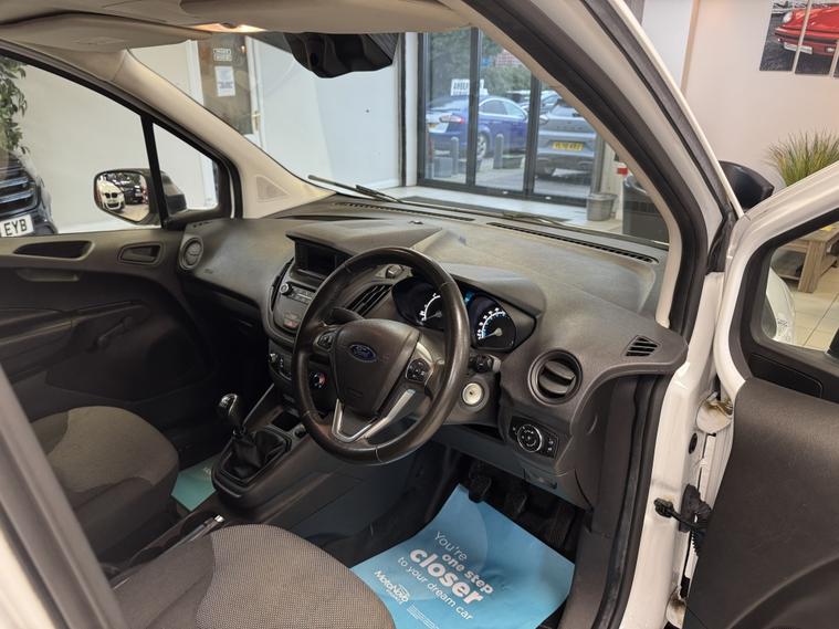 A practical and economical Ford Transit Courier 1.5 TDCi finished in excellent condition, with just 41, 000 miles. This Euro 6 compliant van is ideal for business use, offering reliability, efficiency and low running costs. The vehicle benefits from service history, was last serviced on 16/12/2025 at 40, 445 miles, and has an MOT valid until 13/11/2026. Supplied with 2 keys. Key Features: 1.5 TDCi Diesel Engine (75 ps) Manual Gearbox Euro 6 (ULEZ Compliant) Rear Parking Sensors Air Conditioning Cruise Control Multifunction Steering Wheel Bluetooth Connectivity USB Port Ply Lined Rear Full Bulkhead Service History 2 Keys The load area is fully ply lined with a solid bulkhead, making it ready for work. Rear parking sensors add convenience when manoeuvring, while air conditioning and cruise control make longer journeys more comfortable. This Transit Courier is a well-maintained, ready-to-go van that would suit tradespeople, delivery drivers or small businesses looking for a reliable and efficient vehicle. Contact us today to arrange a viewing or test drive.. PAS, Cargo area lining, Radio, Steering wheel rake adjustment, Steering wheel reach adjustment, Solid rear doors, ABS, Drivers airbag, Deadlocks, Immobiliser, Remote central locking, Cloth seat trim, Solid Paint, Steel wheels.