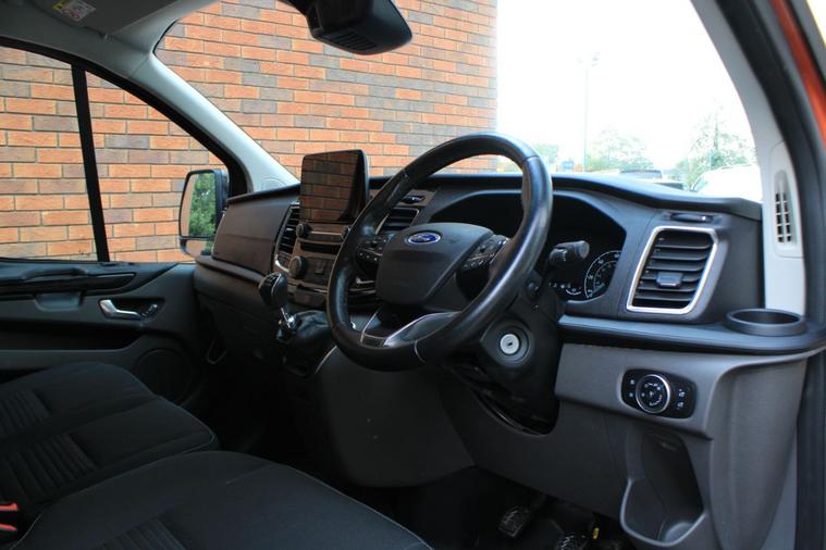 Finished in metallic orange with full black cloth interior. Features include Apple CarPlay and Android Auto, front splitter and rear spoiler in gloss black, 20” OZ Racing alloy wheels in black, front and rear park distance control with rear view camera, heated seats, air conditioning, Bluetooth connectivity with media streaming, DAB digital radio, automatic headlights, cruise control, drive modes, heated front windscreen, electric folding exterior mirrors, sliding passenger side rear door, front armrest, voice control, multifunctional leather steering wheel, 6 speed manual transmission plus much more standard specification. This Transit Custom is offered in excellent condition having covered 77100 miles from new by its 1 owner. The van comes complete with a service history consisting of the following 17/01/2023 at 24914 miles, 24/01/2024 at 45052 miles and 30/04/2025 at 70058 miles. Plus VAT.