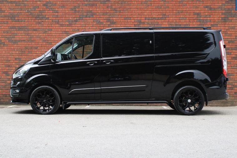 Finished in Agate Black with full black cloth interior. Features include Apple CarPlay and Android Auto, front splitter and rear spoiler in gloss black, 20” multispoke alloy wheels finished in gloss black, front and rear park distance control, heated seats, air conditioning, dual passenger seat, Bluetooth connectivity with media streaming, DAB digital radio, automatic headlights, cruise control, drive modes, heated front windscreen, electric folding exterior mirrors, sliding nearside rear door, rear plywood lining, power point plug, driver’s armrest, roof rails, voice control, multifunctional leather steering wheel, 6 speed manual transmission plus much more standard specification. This Transit Custom is offered in excellent condition having covered 48300 miles from new by its 1 owner. The van comes complete with a service history consisting of the following 11/04/2024 at 18485 miles and 16/06/2025 at 47064 miles. Reassurance of a remaining manufacturer’s warranty until March 2026. Plus VAT.