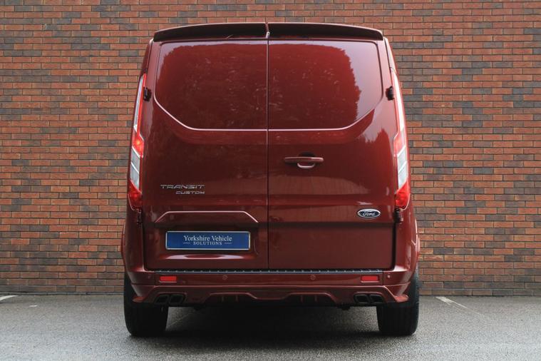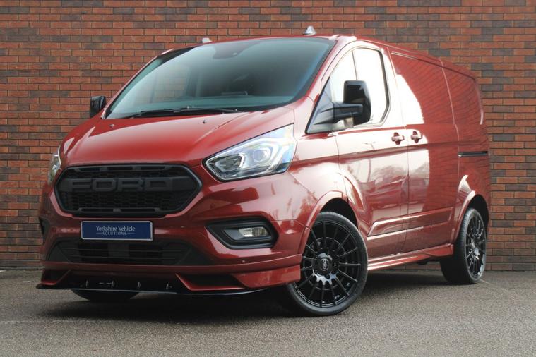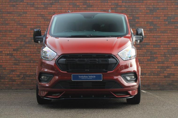 Finished in metallic red with full black cloth interior. Features include Apple CarPlay and Android Auto, front splitter and rear spoiler, rear diffuser with quad exhaust tips, 20” multispoke alloy wheels in black, front and rear park distance control, heated seats, air conditioning, Bluetooth connectivity with media streaming, DAB digital radio, automatic headlights, cruise control, drive modes, heated fronted windscreen, electric folding exterior mirrors, sliding nearside rear door, voice control, multifunctional leather steering wheel, 6 speed manual transmission plus much more standard specification. This Transit Custom is offered in excellent condition having covered 39100 miles from new by its 1 owner. The van comes complete with a full service history consisting of the following 11/10/2022 at 15002 miles, 19/07/2024, and 20/10/2025 at 38966 miles. Plus VAT.