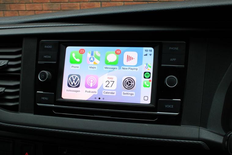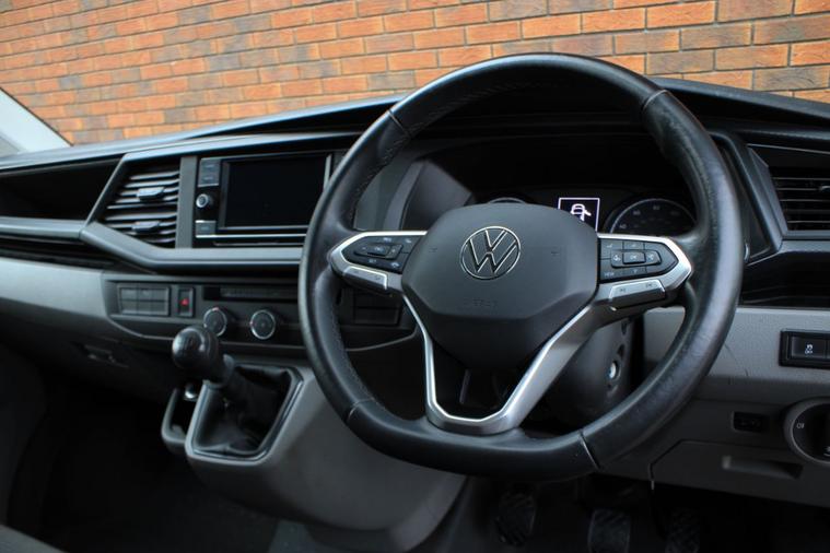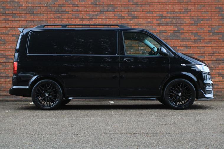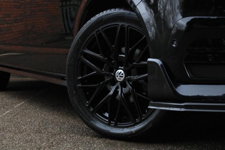 Finished in Deep Black pearl effect with titanium black double grid cloth interior. Features include Apple CarPlay and Android Auto, front and rear park distance control with rear view camera, heated seats, front splitter and rear spoiler in gloss black, 20” multispoke alloy wheels in gloss black, air conditioning, Bluetooth connectivity with media streaming, DAB digital radio, halogen headlights with daytime running lights, cruise control, front assist, heated electrically adjustable exterior mirrors, sliding nearside rear door, full height steel bulkhead, dual passenger seat, driver’s armrest, voice control, multifunctional leather steering wheel, 5 speed manual transmission plus much more standard specification. This Transporter is offered in excellent condition having covered 31200 miles from new by its 1 owner. The van comes complete with the reassurance of a remaining manufacturer’s warranty until May 2027 and a comprehensive service history consisting of the following – 08/01/25 at 13826 miles, 08/05/25 at 22191 miles and 12/11/25 at 31097 miles. Plus VAT.