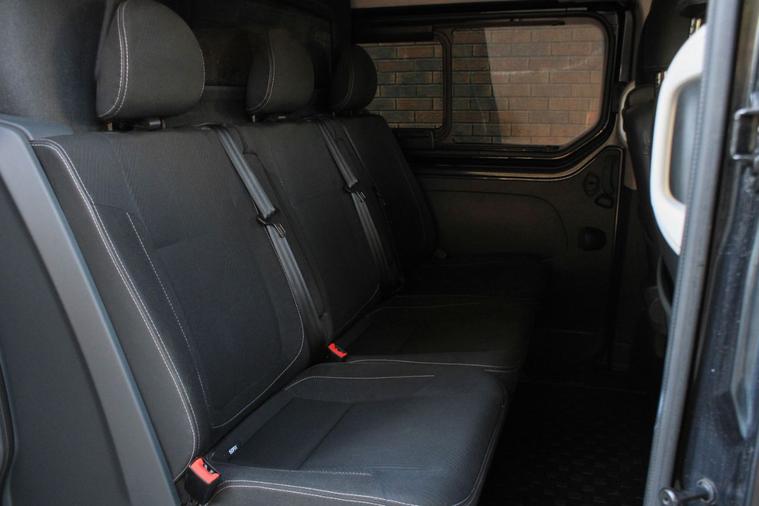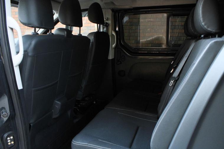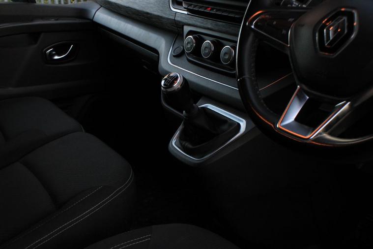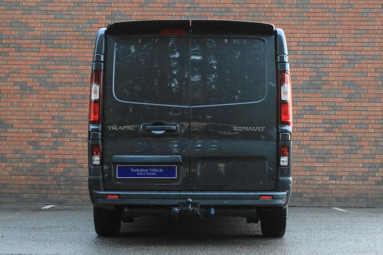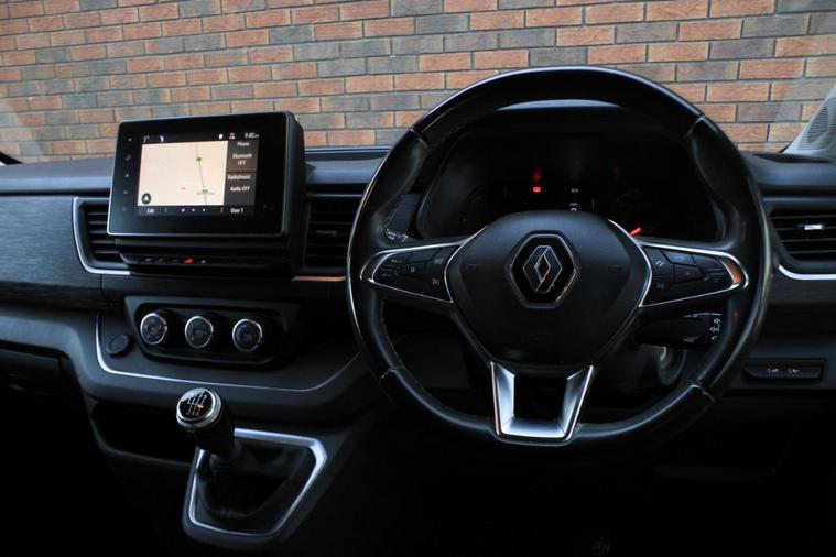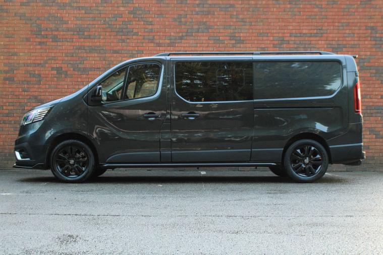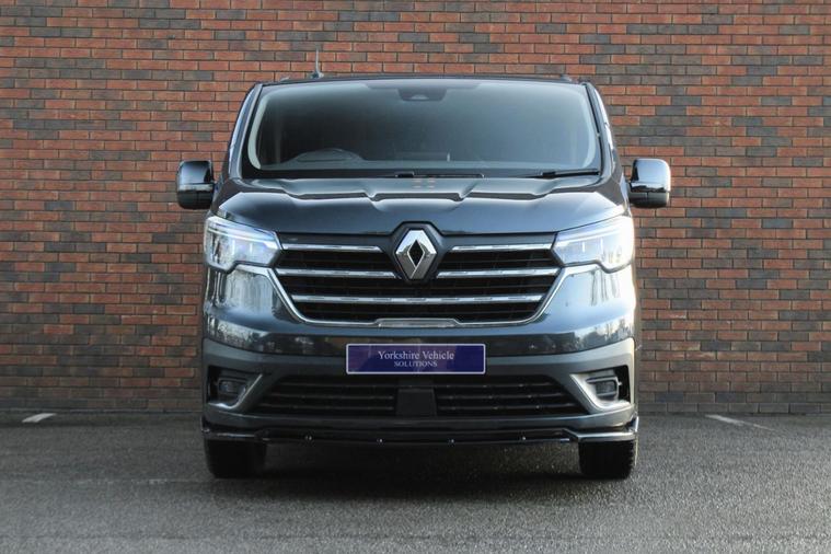 Finished in Slate Grey with full black Java cloth interior. Features include Apple CarPlay and Android Auto, R Link satellite navigation, front splitter and rear spoiler in gloss black, second row seating (6 seats), 17” alloy wheels in black, rear park distance control, air conditioning, Bluetooth connectivity with media streaming, DAB digital radio, automatic LED pure vision headlights with LED daytime running lights, rain sensor, cruise control, electrically adjustable exterior mirrors, tinted windows, black titanium horizontal interior trim, driver’s armrest, roof rails, multifunctional premium faux leather steering wheel, 6 speed manual transmission plus much more standard specification. This Trafic is offered in excellent condition having covered 43500 miles from new by its 1 owner. The van comes complete with a service history consisting of the following 16/07/2023 at 16523 miles and 26/11/2025 at 43080 miles. Plus VAT.