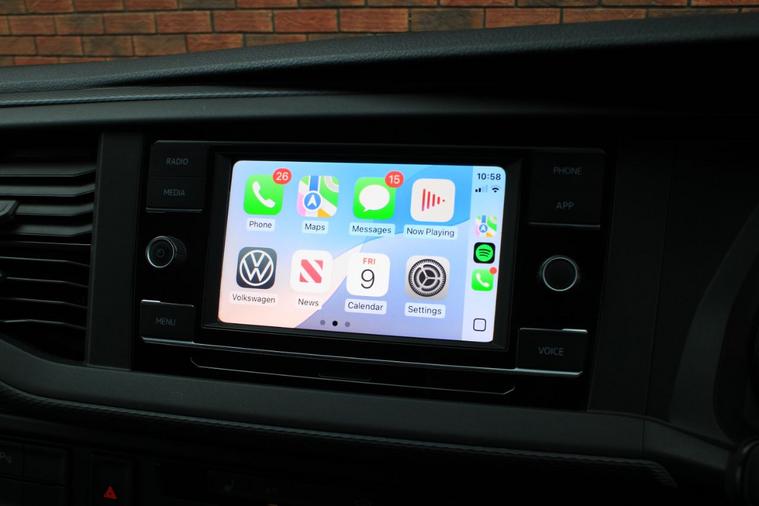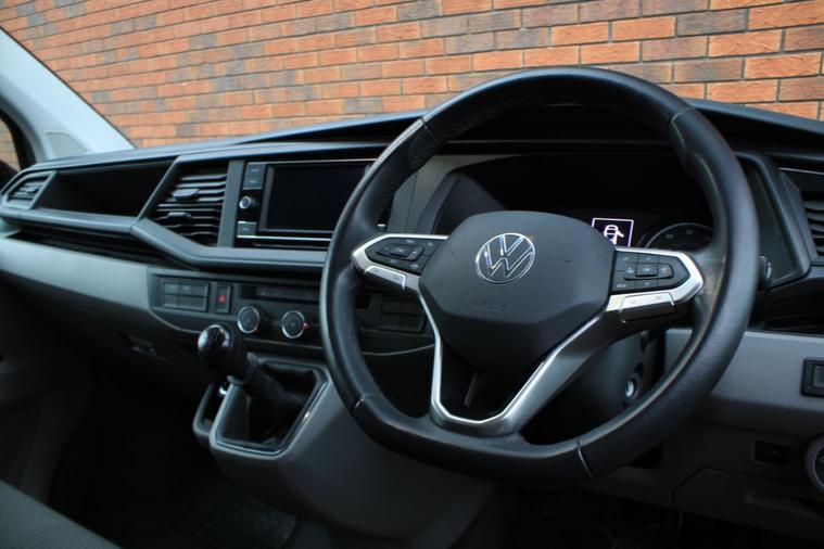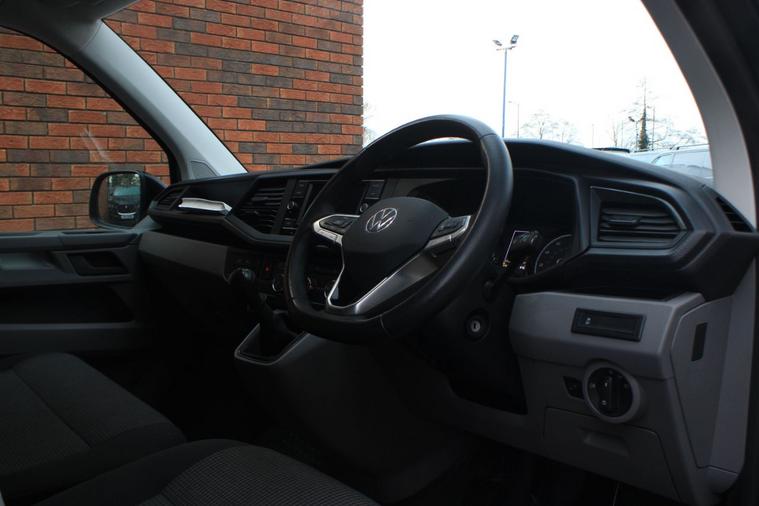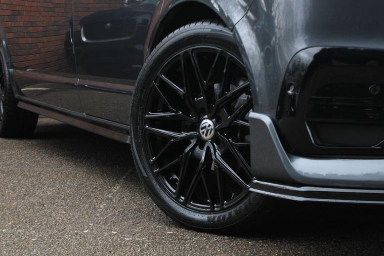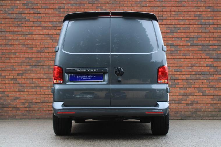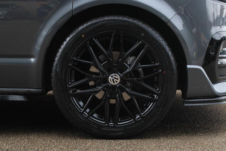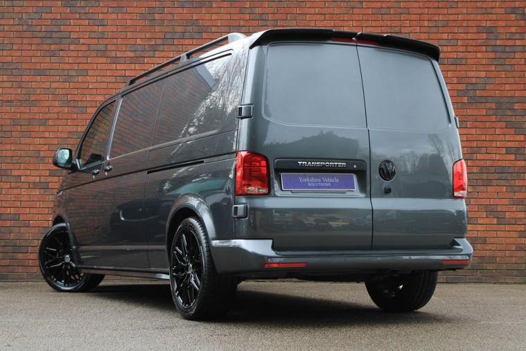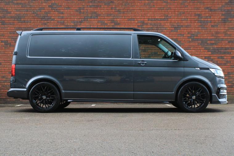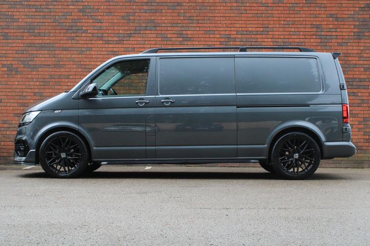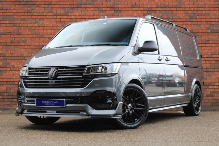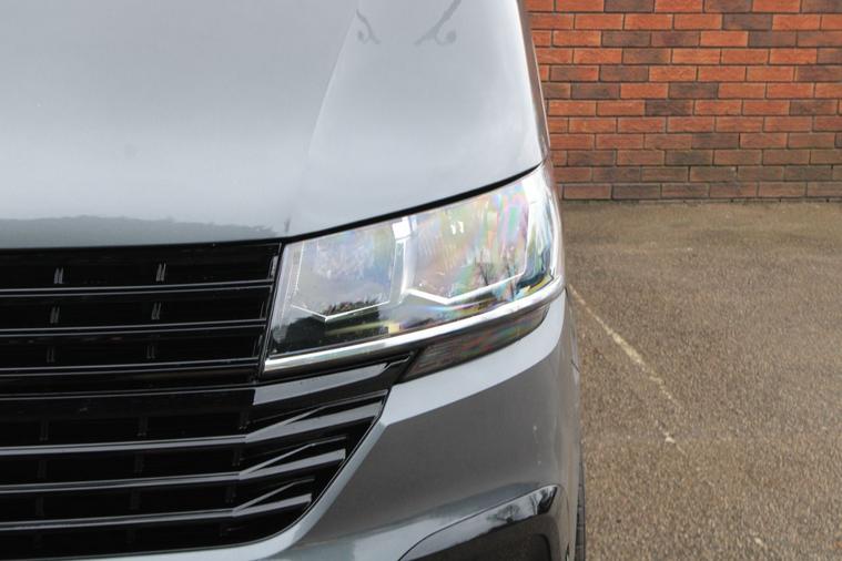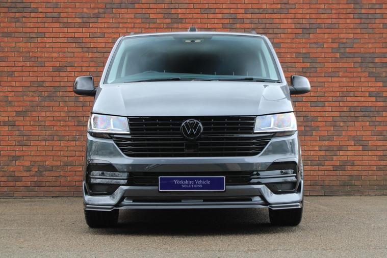Finished in Indium Grey metallic with titanium black double grid cloth interior. Features include Apple CarPlay and Android Auto, heated seats, front splitter and rear spoiler in gloss black, 20” multispoke alloy wheels in gloss black, front and rear park distance control with rear view camera, air conditioning, Bluetooth connectivity with media streaming, DAB digital radio, cruise control, heated electrically adjustable exterior mirrors, sliding nearside rear door, dual passenger seat, driver’s armrest, roof rails, voice control, multifunctional leather steering wheel, 5 speed manual transmission plus much more standard specification. This 1 owner Transporter has covered 30000 miles from new and is offered in excellent condition. The van comes complete with a full service history consisting of the following 14/03/2025 at 19339 miles and 16/12/2025 at 30384 miles. Plus VAT.