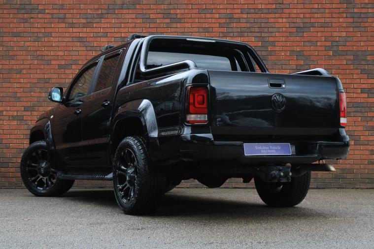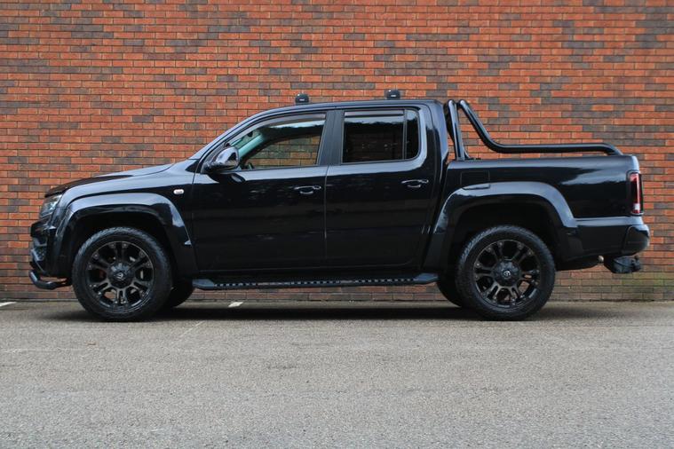 Finished in Deep Black pearl effect with palladium grey and titanium black Vienna leather interior. Features include Apple CarPlay and Android Auto, Discover satellite navigation, Roll n Lock shutter cover, 20” Fuel off-road D560 vapor alloy wheels, front and rear park distance control with rear view camera, heated front seats, digital dual zone climate control with automatic air conditioning, Bluetooth connectivity with media streaming, DAB digital radio, automatic bi-xenon headlights with LED daytime running lights, rain sensor, cruise control, heated electric folding exterior mirrors, rear privacy glass, Thule roof rack, fixed side steps, black sports bar, front bull guard, all-terrain tyres, fixed tow bar, voice control, multifunctional leather steering wheel with paddleshift, automatic transmission plus much more standard specification. This Amarok is offered in excellent condition having covered 91300 miles from new. The truck comes complete with a service history consisting of the following - 04/12/2018 at 25285 miles, 07/05/2021 at 47502 miles, 25/04/2023 at 52812 miles and 23/01/2025 at 68891 miles. Plus VAT.