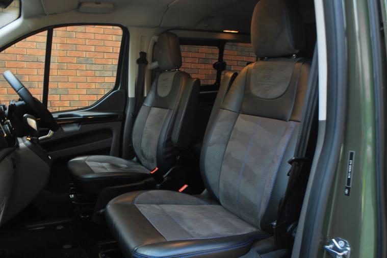 Finished in Brunswick Green with full black MS-RT leather and suede interior. Features include full MS-RT exterior body kit with MS-RT exhaust tips, Apple CarPlay and Android Auto, SYNC satellite navigation, 20” OZ Racing alloy wheels in grey, second row seating (5 seats), front and rear park distance control with rear view camera, heated front seats, air conditioning, Bluetooth connectivity with media streaming, DAB digital radio, automatic headlights with high beam assist, adaptive cruise control, lane keeping aid, traffic sign recognition, drive modes, heated front windscreen, electric folding exterior mirrors, rear privacy glass, sliding rear passenger doors, blue contrast stitching, voice control, multifunctional MS-RT leather steering wheel, automatic transmission plus much more standard specification. This Transit Custom MS-RT is offered in excellent condition having covered only 12600 miles from new by its 1 owner. The van comes complete with a full service history consisting of the following - 24/01/2025 at 8089 miles and 15/01/2026 at 12475 miles.