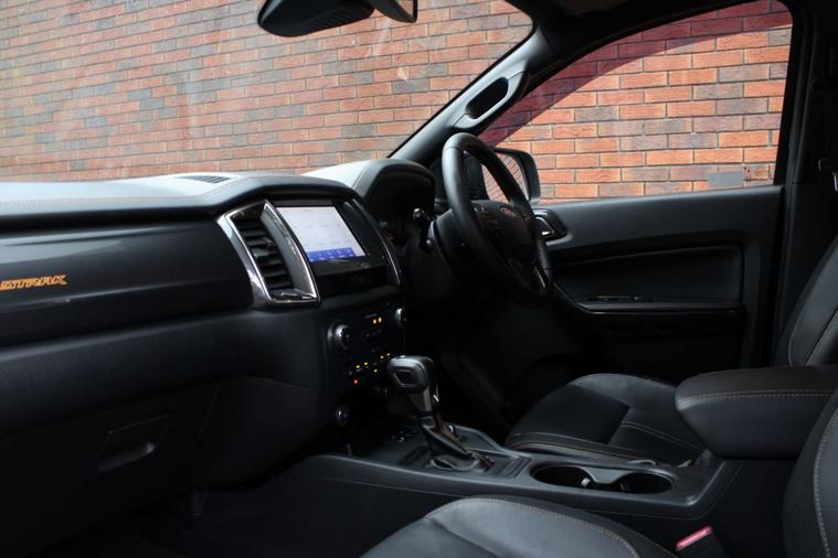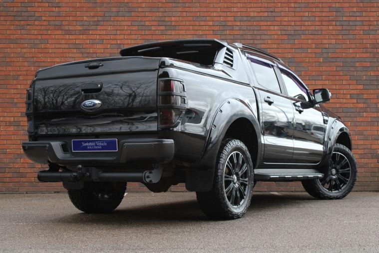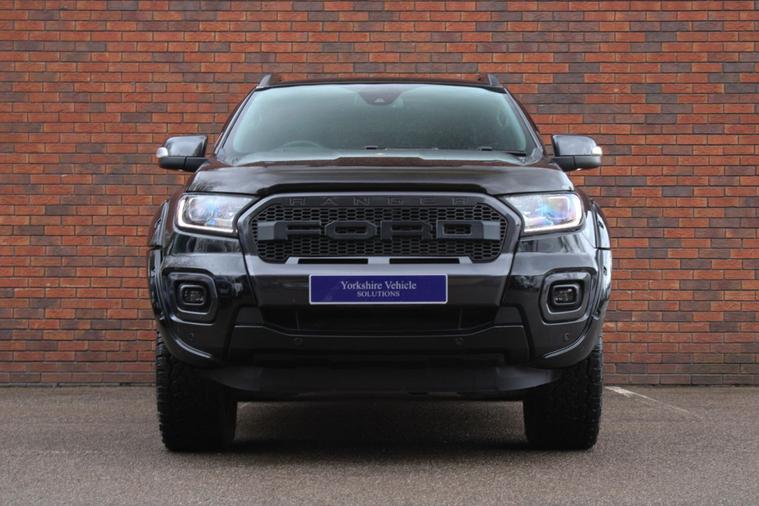 Finished in Shadow Black with full ebony journey grained leather interior. Features include Alpha SC-Z sports tonneau cover, wheel arch extensions, 20” multispoke alloy wheels finished in black, Apple CarPlay and Android Auto, SYNC satellite navigation, front and rear park distance control with rear view camera, heated front seats with driver electric adjustment, digital dual zone climate control with automatic air conditioning, Bluetooth connectivity with media streaming, DAB digital radio, automatic LED headlights with high beam assist, rain sensor, cruise control, traffic signs, lane keeping aid, pre-collision assist, rear differential lock, heated front windscreen, electric folding exterior mirrors, privacy glass, keyless entry, interior ambient lighting, bonnet deflector, fixed side steps, roof rails, all-terrain tyres, fixed tow bar, voice control, multifunctional leather steering wheel, automatic transmission plus much more standard specification. This Ranger Wildtrak is offered in excellent condition having covered 71000 miles from new by its 1 former keeper. The truck comes complete with a service history to include the wet belt replacement. No VAT.