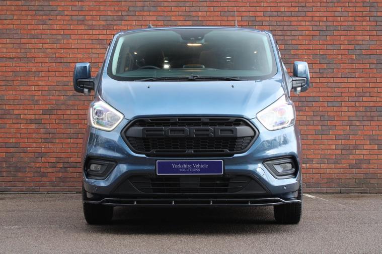 Finished in metallic blue with full black cloth interior. Features include ICE feature pack 25 with adaptive cruise control, Apple CarPlay and Android Auto, SYNC satellite navigation, front splitter in gloss black, second row seating (6 seats), 16” multispoke alloy wheels, front and rear park distance control with rear view camera, heated front seats, air conditioning, Bluetooth connectivity with media streaming, DAB digital radio, automatic headlights, rain sensor, drive modes, heated electric folding exterior mirrors, rear privacy glass, sliding rear passenger doors, bulkhead removal, voice control, multifunctional leather steering wheel, 6 speed manual transmission plus much more standard specification. This Transit Custom is offered in excellent condition having covered only 12500 miles from new by its 1 former keeper. The van comes complete with a full Ford main dealer service history consisting of the following 12/07/2024 at 8808 miles.