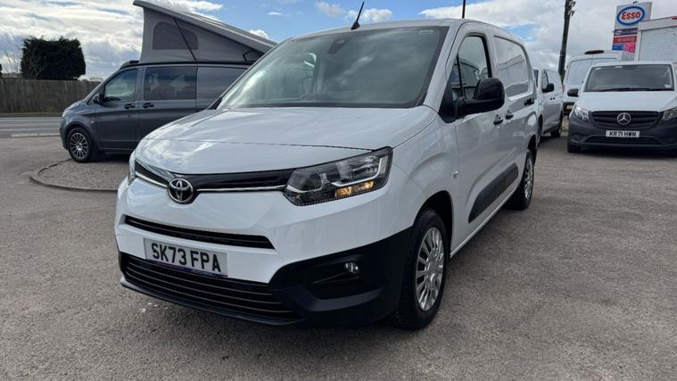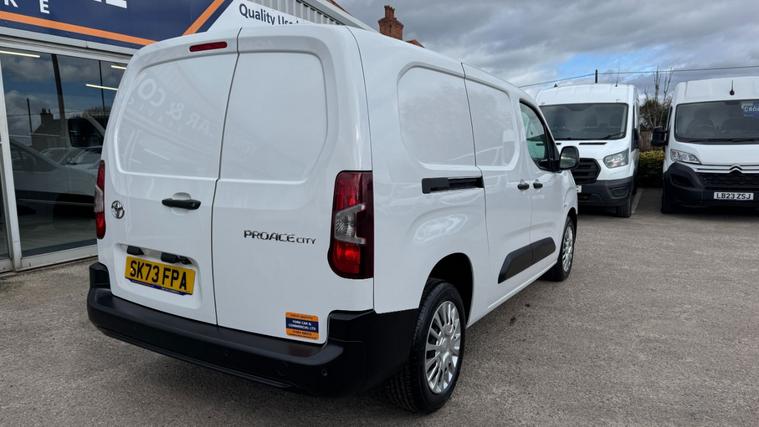 OUTSTANDING VALUE 2023 LWB TOYOTA PROACE CITY . VEHICLE SUPPLIED WITH A FULL SERVICE, 12 MONTHS MOT AND A COMPREHENSIVE PARTS AND LABOUR WARRANTY ( EXTENDABLE 6 , 12, 24 MONTHS) . Part exchange welcome. All major Credit / Debit cards accepted. Low rate finance arranged. Nationwide delivery . Additional detailed pictures and personalised videos are also available on request.This 2023 Toyota PROACE CITY is a rare find, boasting a full service history and having had only one owner from new. This Icon Long Panel Van LWB Euro 6 (s/s) 5dr model is equipped with a 1.5L BlueHDi diesel engine and comes with a 12 month MOT for your peace of mind. Inside, you'll appreciate the convenience of manual air conditioning, auto headlights, and smartphone integration with Apple CarPlay and Android Auto, making every journey more connected and comfortable.The PROACE CITY stands out with its impressive 3900 litres of cargo volume, offering ample space for your business needs. Its fuel economy is a notable highlight, achieving 51 mpg, and it also benefits from low CO2 emissions, indicating its efficiency compared to similar vehicles. For easier manoeuvring, it features a rear parking camera with dynamic guide lines and rear parking sensors, ensuring confidence when parking.Spec & Features16in Steel Wheels with Wheel Caps - 5 Triple Spoke180 Degree Opening on Rear Wing Doors3.5in Colour Multi-Information Display8in TouchscreenAdjustable Head RestsAdjustable Speed Limiter - ASLAirbags -