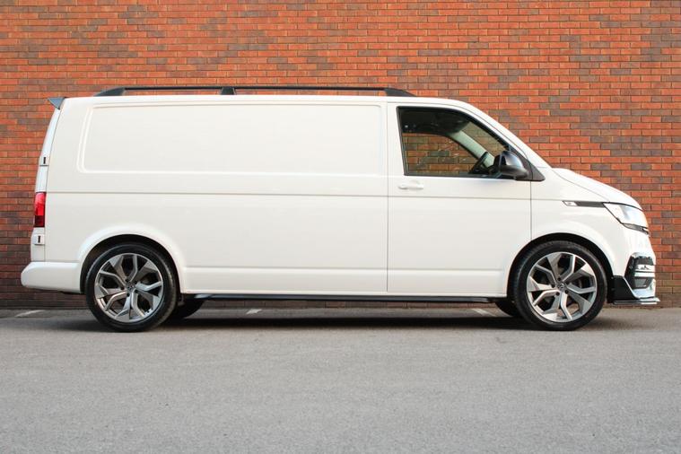 Finished in Candy White with titanium black double grid cloth interior. Features include Apple CarPlay and Android Auto, front splitter and rear spoiler in gloss black, front grille in gloss black, 20” split spoke alloy wheels with titanium finish, rear park distance control with rear view camera, air conditioning, dual passenger seat, Bluetooth connectivity with media streaming, DAB digital radio, daytime running lights, cruise control, hill start assist, heated electrically adjustable exterior mirrors, sliding nearside rear door, driver & passenger armrest, roof rails, voice control, multifunctional leather steering wheel, 5 speed manual transmission plus much more standard specification. This Transporter is offered in excellent condition having covered 69300 miles from new by its 1 owner. The van comes complete with a Volkswagen main dealer service history consisting of the following - 04/12/2023 at 26156 miles and 16/06/2025 at 62509 miles. Plus VAT.