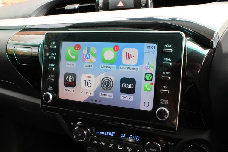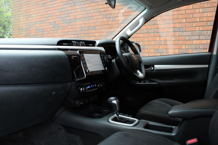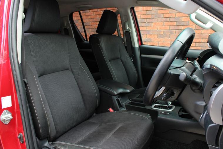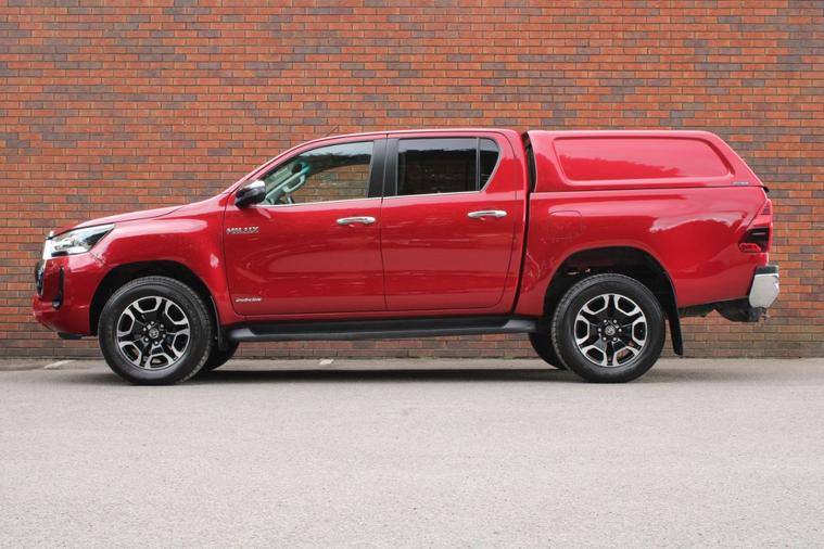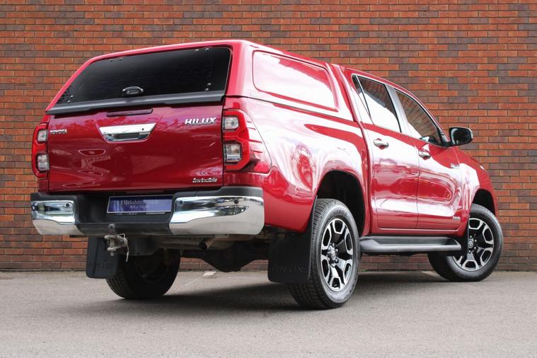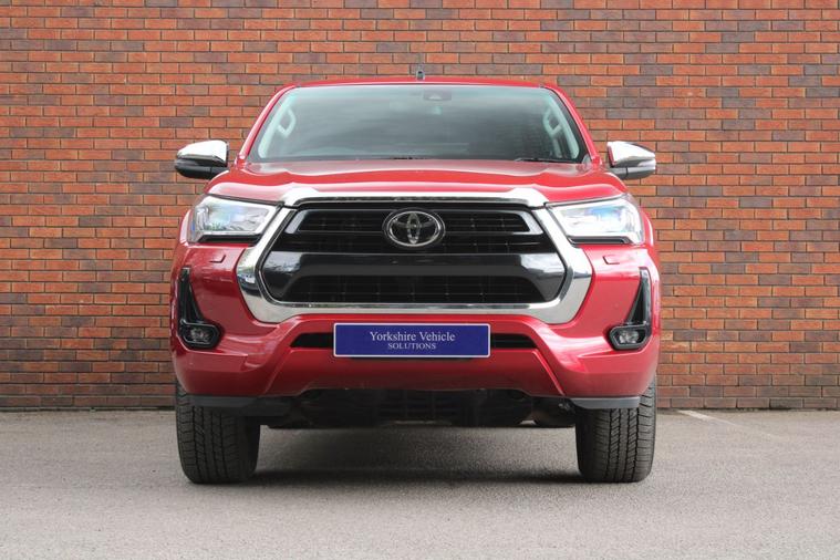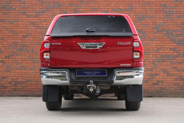 Finished in Crimson Spark Red metallic with full black cloth interior. Features include Aeroklas rear canopy, Apple CarPlay and Android Auto, fixed tow bar, 18” six twin spoke alloy wheels, front and rear park distance control with rear view camera, heated front seats, digital climate control with automatic air conditioning, bluetooth connectivity with media streaming, DAB digital radio, automatic LED headlights with LED daytime running lights, intelligent adaptive cruise control, road sign assist, lane departure alert, electric folding exterior mirrors, rear privacy glass, keyless entry, fixed side steps, voice control, multifunctional leather steering wheel, automatic transmission plus much more standard specification. This Hilux Invincible is offered in excellent condition having covered 97700 miles from new by its 1 owner. The truck comes complete with a service history consisting of the following – 26/01/2022 at 18024 miles, 01/08/2022 at 35933 miles, 19/04/2023 at 55404 miles, 18/04/2024 at 73358 miles and 19/03/2026 at 97655 miles. Plus VAT.