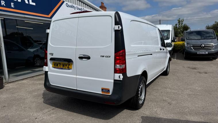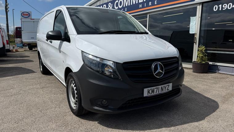 1 OWNER FROM NEW WITH FULL SERVICE HISTORY .MERCEDES VITO XLWB . ONLY 61 , 000 MILES. VEHICLE SUPPLIED WITH 12 MONTHS MOT, FULL SERVICE AND A COMPREHENSIVE PARTS AND LABOUR WARRANTY ( EXTENDABLE 6 , 12, 24 MONTHS) . Part exchange welcome. All major Credit / Debit cards accepted. Low rate finance arranged. Nationwide delivery . Additional detailed pictures and personalised videos are also available on request.This 2021 Mercedes Benz Vito 116 CDI Progressive boasts an impressive MOT valid until April 2027, offering peace of mind for years to come. This L3 XLWB RWD model, registered in 2021, features a robust 2.0 litre Euro 6 diesel engine delivering 161 bhp. With full service history up to 61561 miles on 2026-04-22 and having had only one owner, this vehicle has been meticulously maintained. Notable features include the Audio 30 system with Android Auto and Apple CarPlay, Bluetooth connectivity, and a reversing camera for enhanced parking assistance. The Headlight Assistant automatically manages your headlights, ensuring optimal visibility.The Vito Progressive derivative offers a substantial cargo volume of 6600 litres, making it an excellent choice for businesses needing ample space. The 161 bhp engine power indicates a strong performance, outperforming many vehicles in its class. Combined with its comprehensive service history and long MOT, this Mercedes Benz Vito presents a compelling package for those seeking reliability and capability.Spec & Features16in Steel WheelsABS