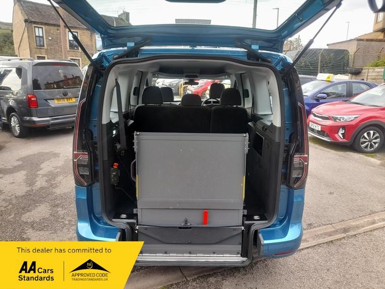 THIS IS THE NEW SHAPE CADDY MAXI LIFE 2.0 TDI ( VW ENGINE NOT 1.5 FORD UNIT ) WITH FULLY ADAPTED REAR WHEELCHAIR CONVERTED CAR, WITH FOLD OUT REAR LIGHT WEIGHT RAMP WITH LOWERED FLOOR AND WINCH WITH FLOOR MOUNTED SECURE FIXING POINTS, DATE 1ST REG JUNE 2024 AND COMES WITH BALANCE OF VW MANUFACTURER WARRANTY, MASSIVE SAVING FROM PRICE WITH ONLY 7, 983 MILES. ONE OWNER FROM NEW IN METALLIC BLUE WITH CONTRASTING GREY INTERIOR TRIM, APPLE CAR PLAY, REAR PARKING CAMERA. TOP OF THE RANGE MODEL WITH ROOF BARS AND ALLOY WHEELS. 5 SEAT CAR WITH 2 FRONT AND 3 REAR SEATS. THIS CAR COMES WITH A NONE DATING PRIVATE NUMBER. NEW. CAR WILL COME FULLY SUPPORTED WITH 12 MONTHS AA BREAKDOWN RECOVERY PACKAGE ...........ALL PART EXCHANGE WELCOME AND FINANCE CAN BE ARRANGED............