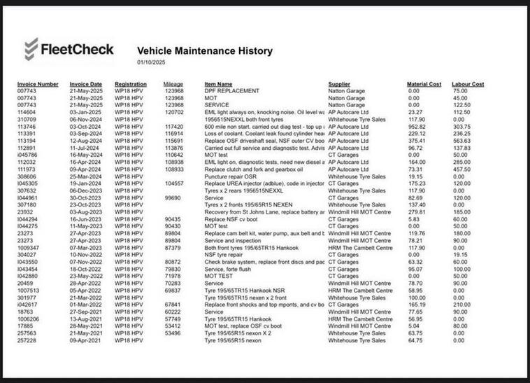 A very clean & tidy van, with comprehensive service history including a cambelt change. Used for car parts delivery, so in very good condition throughout
