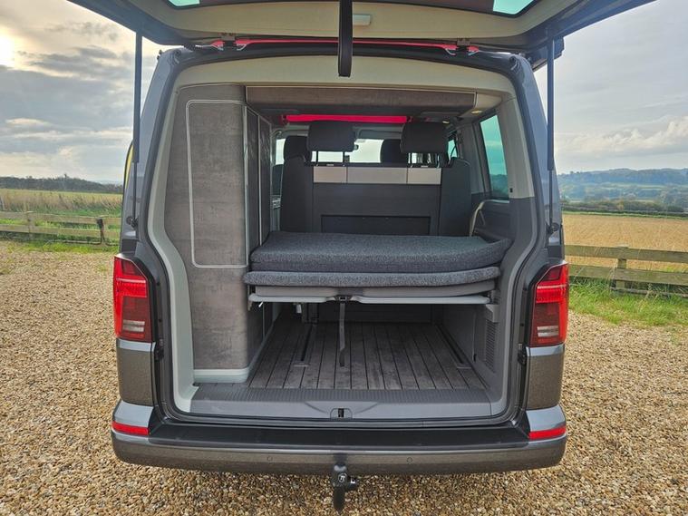 * CLICK PLAY WATCH THE WALK ROUND VIDEO. FULL VOLKSWAGEN SERVICE HISTORY + 12 MONTHS AA BREAKDOWN COVER + 3 MONTHS NATIONWIDE MECHANICAL BREAKDOWN WARRANTY+ EXPERIAN HPI CHECKED + FULLY DETAILED INSIDE AND OUT. REYLANDS ARE PLEASED TO OFFER FOR SALE THIS GREAT VW CALIFORNIA automatic DSG WITH 4 BERTHS. IT HAS A ELECTRIC POP ROOF, RARE ELECTRIC DOOR, and upgraded IMATATION WOOD FLOOR, STUNNING METTALIC PAINT WORK, DOUBLE BED AND ROCK AND ROLL BED DOWNSTAIRS with comfort mattress. You will also find being a VW California IT HAS A GREAT CONTROL MANAGMENT SYSTEM. This works the electric roof, fridge, diesel heater and settings. Standard it has hot air and a/c cold blow to the rear, lovely under counter lighting and factory front blinds as well as rear, leisure battery, gas and electric hock up. All four seats have 3-point seat belts, and the front seats are swivelling captain chairs to make a great dining area when sited. These also are heated along with a/c, electric heated mirrors, front and rear parking sensors and reverse camera, phone mirror and blue tooth for the open road and both keys. when you are camping the California has all the mod cons VW fitted blinds, sliding rear windows, factory window tints to keep the camper cool, a fridge, gas stove and sliding table along with lots a clever storage and lighting up and down stairs. you have a clean water tank and a dirty water store with drain and electric hook up for when of site. This genuine VW camper has it all lastly a great VW awning with on board outside dining chairs with a great table which neatly stores away in this camper, a towbar handy for a bike rack. Be quick so's not to be disappointed., Reyland's view by appointment please call 01460362719 to book a test drive. address for sat nav reyland car sales, Seavington, ta190qb, , Anti-theft Alarm System and Immobiliser. ***REYLAND'S OPERATE VIEWING BY APPOINTMENT ONLY*** Call Us on (01460362719
