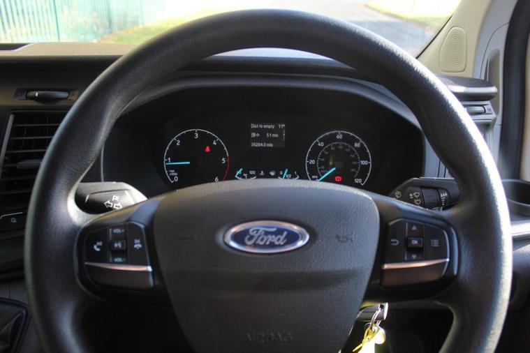 Here we have a nice low mileage example of a Ford Transit Custom 340 Leader edition van MWB edition which comes with its practical design of the 3 frontal view seats, fitted bulkhead and a fully plylined rear load area.