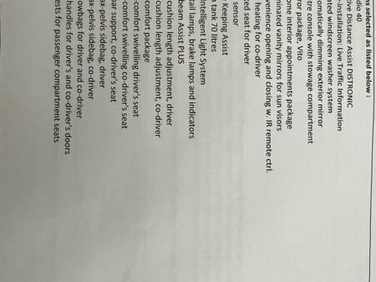 Excellent condition inside and out.only 1 owner from new just covering 43500 miles, comes with full Mercedes service history 3 services in total last major service B including gearbox service carried out on 29.08.2025 at 42255 miles.full health check done on 02/09/2025 by Mercedes. will come with 12 months mot before sale last mot passed with no advisories.4 new Michelin tyres fitted on 30/04/2025, recent new tow bar fitted on 15/07/2025.lots of spec on this crew van all done by Mercedes Benz when purchased including, delivery pack, selenite grey metallic colour , led intelligent light system, avtive distance assist distronic, lane keeping assist, window bags for drive and co driver, Audio 40, mirror package, vito 3 seater comfort, high comfort swivelling co driver seat & drive seat, comfort seat package, heated seats, thorax-pelvis side bag, high beam assist PLUS, heated windscreen washer system, chrome interior appointments package.