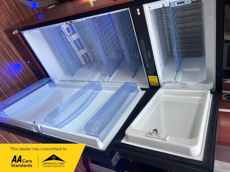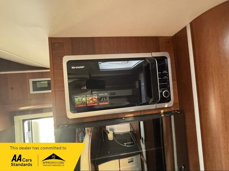 Fridge, tv, shower unit, toilet, cooker , front seats swivel, microwave, Gas tank underfloor