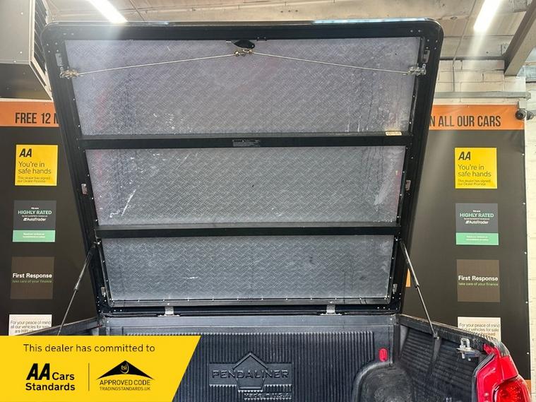 Fitted with a factory fitted Mitsubishi rear lockable (2 keys supplied) hydraulic opening cover fitted with chequer plated top & side rails/tie points with carbon finish protection strips to both side & rear with rear bed fitted with full load liner.