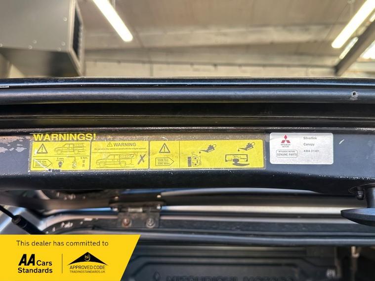 Fitted with a colour coded Mitsubishi rear canopy fitted with tilt opening & lockable side windows (keys supplied), roof bars, roof spoiler, tinted side & rear window with rear bed fitted with full load liner.