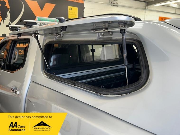 Fitted with colour coded 'Truckman' rear canopy with tilt opening side windows (lockable with keys) & rear tinted tailgate glass (lockable with keys) with roof rails, integrated high level brake light & fitted with full load liner.