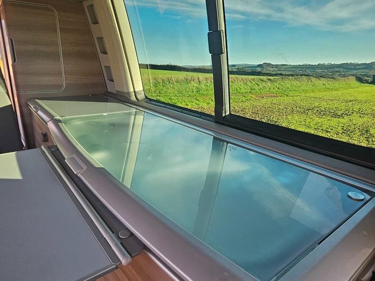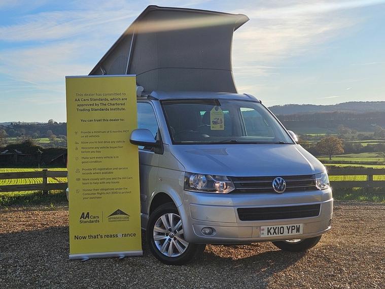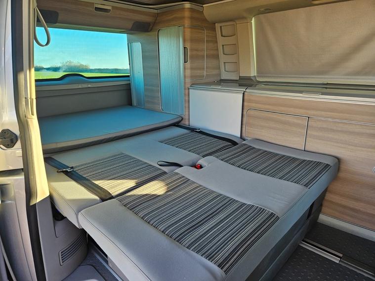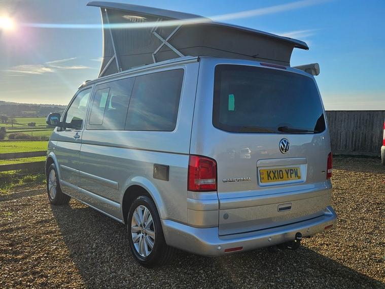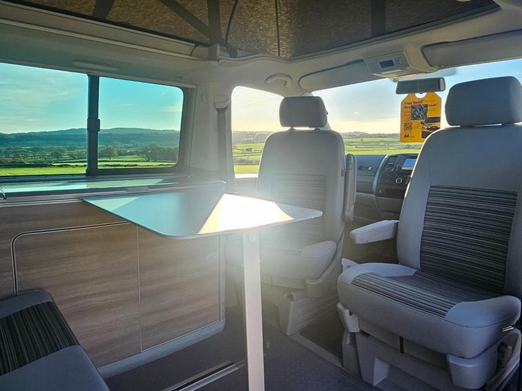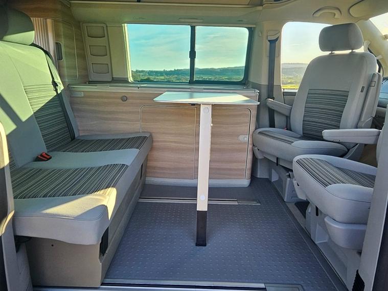 CALL 01460362719 . MOT DUE 28.10.26 NO ADVISORIED + SERVICE HISTORY 11 SERVICES LAST AT 50, 968 (FULL SERICE) + 12 MONTHS AA BREAKDOWN COVER + 3 MONTHS WARRANTY + EXPERIAN HPI CHECKED + FULLY DETAILED INSIDE AND OUT. Reyland's are pleased to offer this stunning VW California ocean SE with a amazing spec. It has desirible upgraded diamond cut VW alloy wheels and a head unit whixh noe includes sat nav and blue tooth. Standard it has auto lights and rear park assist along with a thule tow bar. You will find a top loading fridge, two burner gas hob, fresh and grey water tank, electric pop roof and more. Two captain chairs upfront allow comfort when on the road. A diesel night heater for the colder nights is a must. Drive away today.