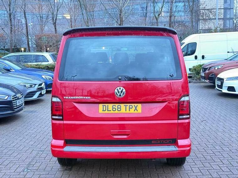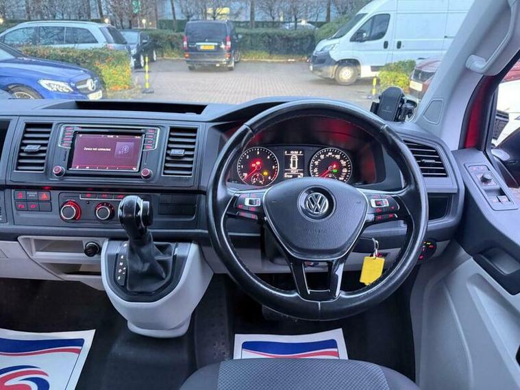 This 2018 Volkswagen Transporter offers peace of mind with a clear vehicle history check. This 2.0 TDI T30 BlueMotion Tech Edition Kombi DSG FWD SWB Euro 6 (s/s) 5dr model is equipped with a powerful 148 bhp 2.0 litre diesel engine and features automatic headlight activation with daytime running lights, a Discover Media Navigation System with Bluetooth connectivity, and LED headlights with LED daytime running lights and tail lights. For convenience, it also includes a hands free set, front and rear parking sensors, and a rear view camera.