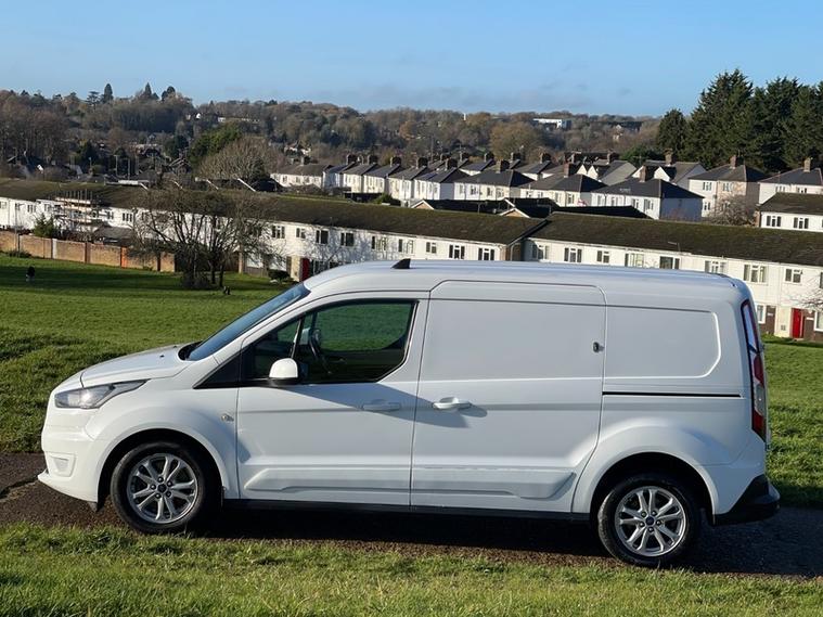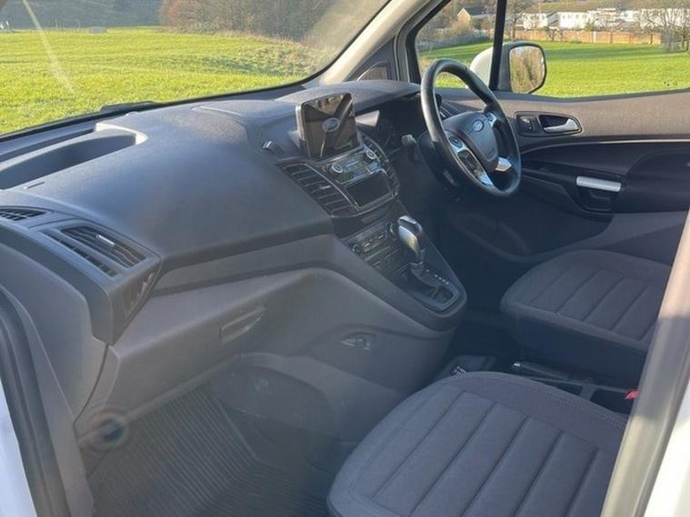 This 2021 Ford Transit Connect 1.5 240 EcoBlue Limited Auto L2 Euro 6 (s/s) 5dr boasts a clear vehicle history and has had only one owner from new. As a 240 Limited derivative, this van is equipped with a 1.5 litre diesel engine, meeting Euro 6 emission standards. The Limited trim level ensures a comfortable experience, featuring heated driver and passenger seats, manual air conditioning, and an audio system with a 4.2 inch screen and Bluetooth connectivity. For added convenience, it includes reverse parking aid with rear sensors.