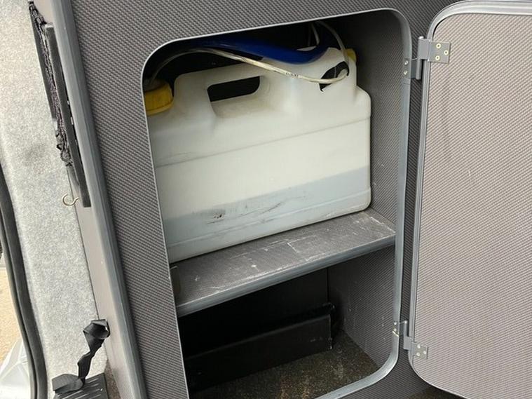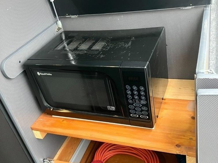 IN THE REASR THIS HAS NIGHT HEATER, LED LIGHTS, TV WITH ARIEL, FRIDGE, SINK WITH ON BORD WATER TANK, ELECTRIC POINTS, MICROMAVE ALL RUNNING OFF LEISURE BATTERY AND LOTS OF STORAGE SPACE.