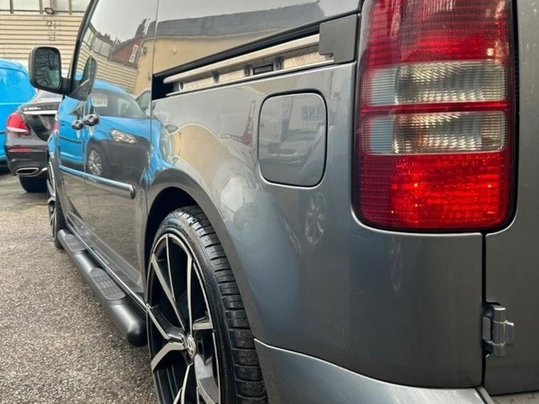 1.6 trendline caddy C20 finished in thje best colour mettalic grey , loads of extras vw 19 inch alloys with excellent tyres all round , side steps in slighty lowered , r sport seats led HEADLIGHTS in lovely condition fully carpeted in the rear , ROOF BARS , ROOF SPOILER great vw top of the range head unit with full service history and only 96000 miles , the van drives just super just as it shoud 12 months MOT will be done , warranty included , 12 months AA breakdown included , we offer finance and all dealer facilities uk delivery is available , fully hpi clear , what a great looking van that drives really well