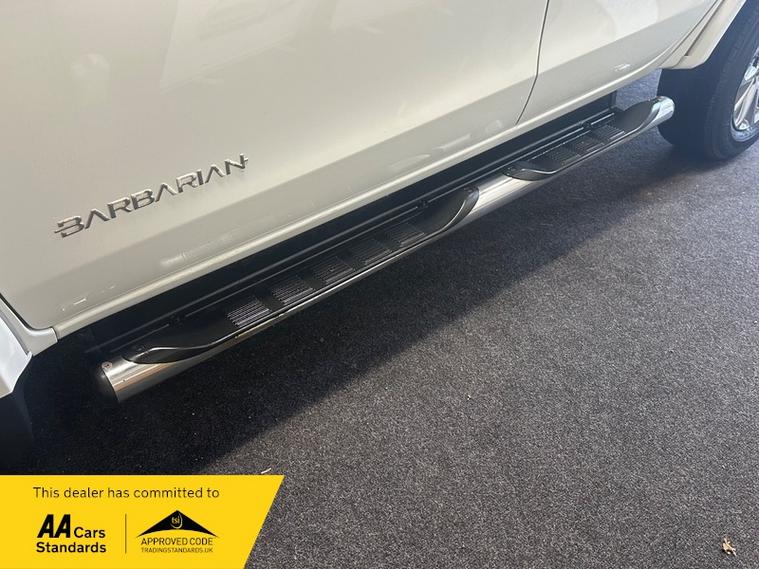 Fitted with front fog lights, headlamp washers, side steps, mud-flaps, rear privacy glass, front & rear wind deflectors, illuminated 'Barbarian' sill protectors.