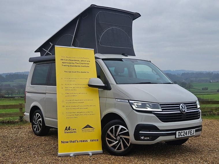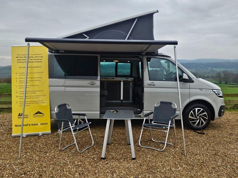 ** CLICK PLAY WATCH THE WALK ROUND VIDEO. FULL VOLKSWAGEN SERVICE LAST 24.06.2025 + SERVICE PLAN TIL 04.07.2034+ 12 MONTHS AA BREAKDOWN COVER + EXTENDED WARRANTY TIL 07.072029 + EXPERIAN HPI CHECKED + FULLY DETAILED INSIDE AND OUT. REYLANDS ARE PLEASED TO OFFER FOR SALE THIS GREAT VW CALIFORNIA automatic DSG WITH 4 BERTHS. IT HAS A ELECTRIC POP ROOF, RARE SHOWER, STUNNING ASCOT GREY PAINTWORK, DOUBLE BED AND ROCK AND ROLL BED DOWNSTAIRS with comfort mattress. You will also find being a VW California IT HAS A GREAT CONTROL MANAGMENT SYSTEM. This works the electric roof, fridge, diesel heater and settings. Standard it has hot air and a/c cold blow to the rear, lovely under counter lighting and factory front blinds as well as rear, leisure battery, gas and electric hock up. All four seats have 3-point seat belts, and the front seats are swivelling captain chairs to make a great dining area when sited. These also are heated along with a/c, electric heated mirrors, front and rear parking sensors and reverse camera, phone mirror and blue tooth for the open road and both keys. when you are camping the California has all the mod cons VW fitted blinds, sliding rear windows, factory window tints to keep the camper cool, a fridge, gas stove and sliding table along with lots a clever storage and lighting up and down stairs. you have a clean water tank and a dirty water store with drain and electric hook up for when of site. This genuine VW camper has it all lastly a great VW awning with on board outside dining chairs with a great table which neatly stores away in this camper. Be quick so's not to be disappointed., Reyland's view by appointment please call 01460362719 to book a test drive. address for sat nav reyland car sales, Seavington, ta190qb, , Anti-theft Alarm System and Immobiliser. ***REYLAND'S OPERATE VIEWING BY APPOINTMENT ONLY*** Call Us on (01460362719