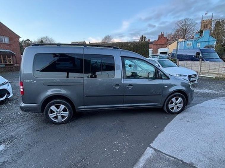 Eco Motors are proud to present this 2 Litre Volkswagen Caddy Maxi Wheelchair Accessible Vehicle (WAV) has 5 Seats (2 Front and 3 Rear). Equipment includes Fold Flat Wheelchair Ramp, Air Conditioning, Electric Front Windows, Electric Adjustable Wing Mirrors, Power Steering, Remote Central Locking, Tinted Rear Windows, Reverse Parking Sensors, Touch Screen Media, 2 Previous Owners, Sliding Panel Doors, Great Service History, Cam Belt Changed at 42000 Miles, This Vehicle comes with the correct wheelchair restraints.This Vehicle is on site and available to view and test drive 6+Days a week simply call 01270316593 anytime.
