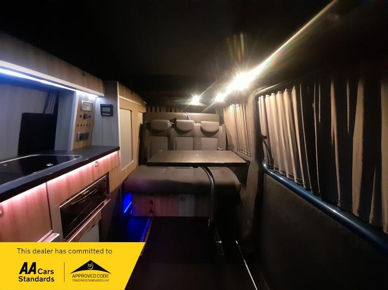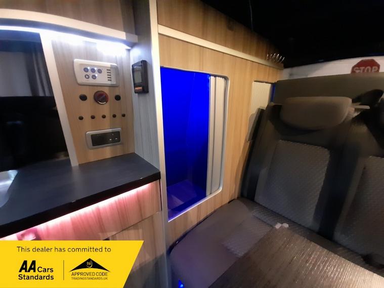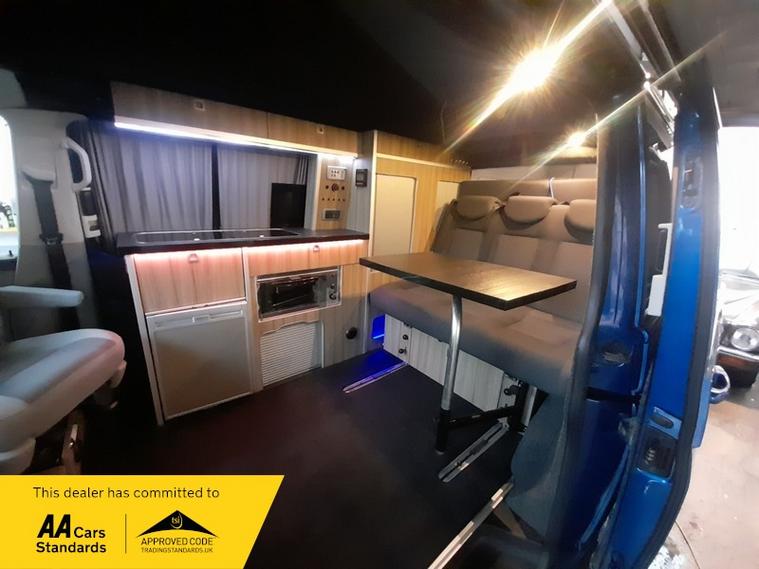 THIS IS A ONE OFF AND PROBABLY THE ONLY ONE-OWNER, LOW-MILEAGE 2- BERTH 5 SEAT CAMPERVAN AT THIS PRICE POINT IN THE COUNTRY TODAY....MASSIVE SPEC AND THE BEST CONVERSION INCLUDING POP UP ROOF, SIDE AWNING, SOLAR PANELS, FRONT SWIVEL SEATS, FOLD OUT 3 SEAT BED, OFF GRID POWER SUPPLY INTERNAL HEATING SYSTEM DIRECT TO DIESEL OR SOLAR PANEL SUPPLY. WITH ALL MAINS POWER SUPPLY IF NEEDED. , COOKER, FRIDGE, TOILET, FITTED BLINDS IN FRONT WINDOW AND MUCH MORE. IN DEEP METALLIC BLUE, SIDE STEPS, UPGRADE ALLOYS, TOW BAR FITTED AND MUCH MORE. THIS VEHICLE WILL COME WITH A FRESH MOT WITH NO ADVISORIES, ...... WE HAVE 3 VIDEOS ON OUR YOUTUBE CHANNEL.....PLEASE CALL 01484582108 FOR FULL CAMPER DETAILS.......THIS CAR WILL COME FULLY SUPPORTED WITH 12 MONTHS AA BREAKDOWN RECOVERY PACKAGE AND AA NATIONAL WARRANTY ...........ALL PART EXCHANGE WELCOME AND FINANCE CAN BE ARRANGED............