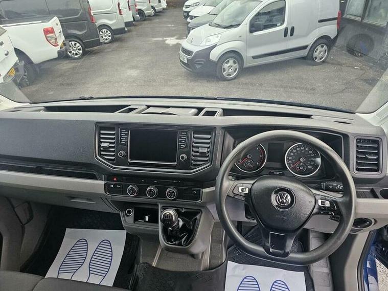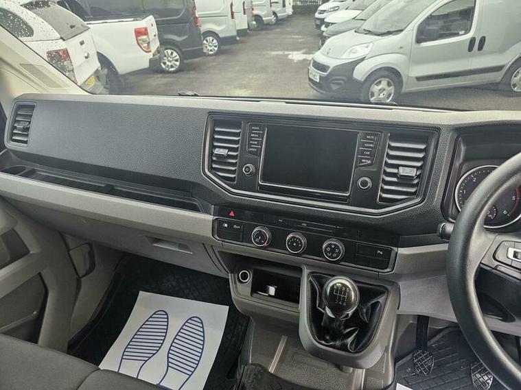 This 2018 Volkswagen Crafter presents an exceptional find with its remarkably low mileage of just 40, 000 miles. As a 2.0 TDI CR35 BlueMotion Tech Trendline FWD MWB High Roof model, it is powered by an efficient 2.0 litre diesel engine and meets Euro 6 emission standards. This Trendline variant offers a substantial towing weight of 3000 kg, making it a capable workhorse. Inside, you'll appreciate the convenience of voice control and two 12V sockets in the front, alongside the Composition Media system which includes DAB+ radio and an 8 inch touch screen with Bluetooth connectivity.