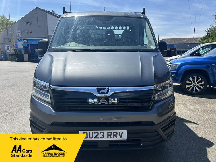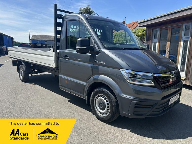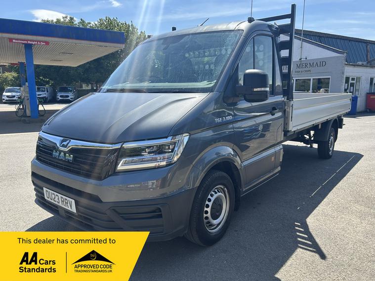 2023 / 23 MAN TGE 2.0 BiTurbo 3180d Dropside FWD LWB Euro 6 (s/s) (180 ps) covered Only 52, 000 miles, Manual, finished in INDIUM GREY with Cloth interior. This truck is ready to work. LWB offering a great load space for scaffold and engineering. In good order with specification Including the all important Air Conditioning, Electric Windows, Bluetooth, 2 Keys and lots more! Well cared for by the previous company owners with a Maintenance record,