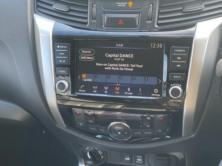 The Nissan Navara 2.3 dCi Tekna Auto 4WD Euro 6 4dr is a 2020 model, boasting a robust 2.3L Diesel Engine and a Four Wheel Drive drivetrain. This impressive vehicle is equipped with a range of advanced features, including the Nissan Intelligent Key system, which allows for keyless entry and added convenience. The LED Headlights with Black Bezel Inlay provide excellent visibility on the road, while the Auto On-Off Headlights with Follow Me Home feature ensures you're seen when you're getting in or out of the vehicle. Inside, you'll find a comfortable and connected driving experience, thanks to the Bluetooth Audio Streaming system and Automatic AC - Dual Zone - Pollen Filter.
