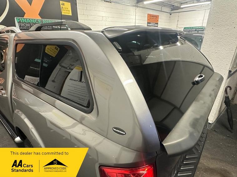 # Currently being prepared for sale # No VAT # Only 1 former keeper # 10 services # Colour coded Truckman rear canopy with opening side windows # Full black leather upholstery #