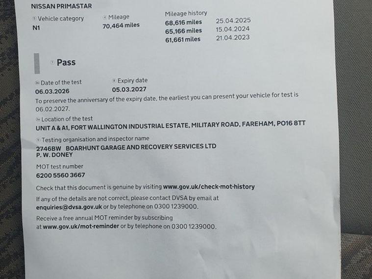 We have a Low Mileage NISSAN PRIMASTAR 1000 2.0 DCI 115 SE L1 H1 PanelVan with New MOT No Advisories, No VAT, with service history, Free AA recovery membership for only £3785. This vehicle was first registered in 2009. It has Alarm, Electric Windows (Front), In Car Entertainment (Radio/CD), Parking Aid (Rear), Tinted Glass. Any possible part exchange taken and collected! Viewing by appointment only. Finance available on most vehicles. Delivery can be arranged. Vehicles wanted, cash paid. Please call 01329462596 for any questions.