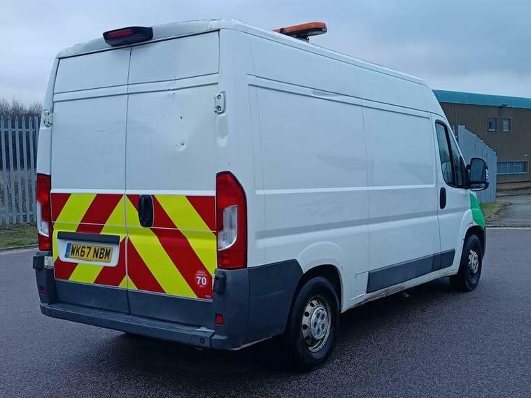 This 2017 Peugeot Boxer 2.0 BlueHDi 335 Professional L2 H2 Euro 6 has had only one owner from new. This well maintained van is powered by an efficient 2.0 litre diesel engine and meets Euro 6 emissions standards. It comes equipped with manual air conditioning to keep you comfortable, and a touchscreen system featuring integrated navigation, FM DAB digital radio, and Bluetooth connectivity for your entertainment and convenience. For easier manoeuvring, it also includes rear parking aid with rear sensors.
