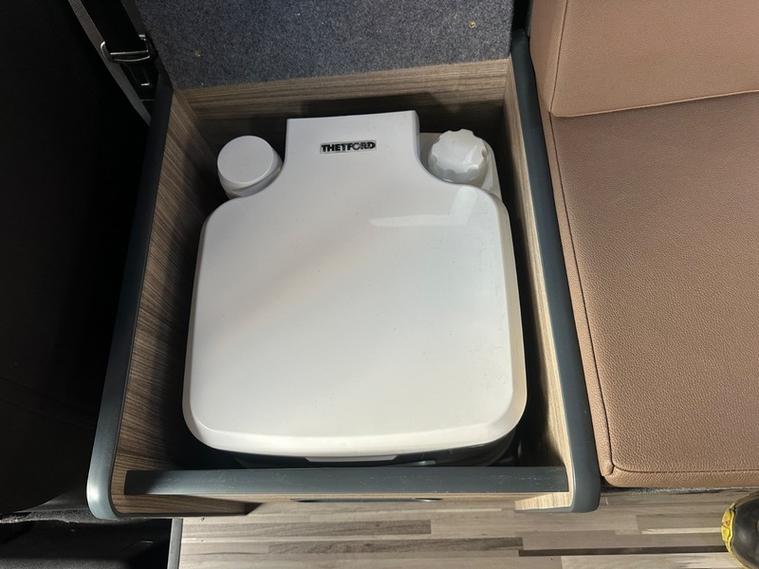 At the end of the bed section is a cupboard to house a Porta Potti toilet