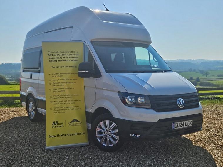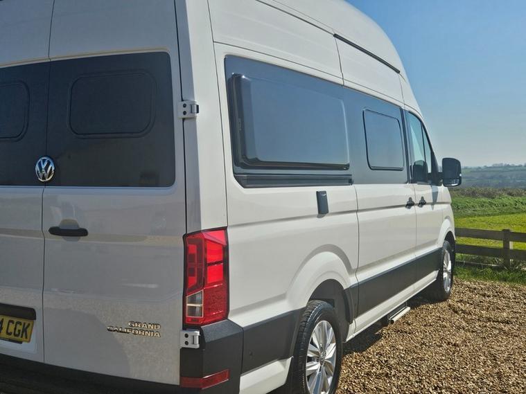 CALL 01460362719 + MOT NOT DUE TIL 2027 + FULL SERVICE HISTORY + FIRST SERVICE CARRIED OUT ON 24/04/2025 + MANUFACTURER WARRANTY TIL 27/03/2029 + SERVICE PACK AND MOT'S AT VOLKSWAGEN INCLUDED 4 SERVICES AND 3 MOT'S + EXPERIAN HPI CHECKED + FULLY DETAILED INSIDE AND OUT. Adventure is calling...Where will the California Grand take you? Star lite nights through the Grands sky lights, coffee by the coast in the generous dining area. The grand has it all. Loads of storage, hanging space for clothes, a two burner gas hob, large fridge/freezer and a hot and cold water generous supply over 100ltrs via the Trauma heater. Full wash room, large shower/wet room, no battling the shower curtain and cassette toilet. when sleeping their is a generous fixed double NOT requiring any diner conversion so a stress free morning coffee is guaranteed. When you are on the open road the German build quality shows, the 8 speed automatic gearbox is a dream with heated seats and steering wheel the driver is spoilt. If you are heading farther afield the Grand has solar panel fitted and a external BBQ point. The adaptive cruise a must on open road and you will not be short of tunes with phone mirror. The front and read parking sensors with reverse camera make you a pro when siting your camper. Don't delay start your adventure today.