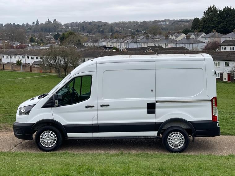 This 2021 Ford Transit 2.0 350 EcoBlue Leader FWD L2 H2 Euro 6 (s/s) 5dr boasts exceptionally low mileage for its age, having covered just 43524 miles, and has been meticulously maintained by a single owner. This Euro 6 compliant 2.0L diesel engine powers the 350 Leader variant, presented in the practical Leader trim. Notable features include manual air conditioning to keep you comfortable, ICE Pack 17 with Bluetooth connectivity for seamless communication and entertainment, and door mirrors equipped with a blind spot eliminator and integrated side indicator for enhanced visibility.