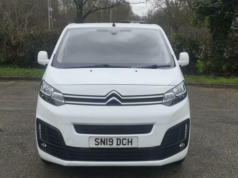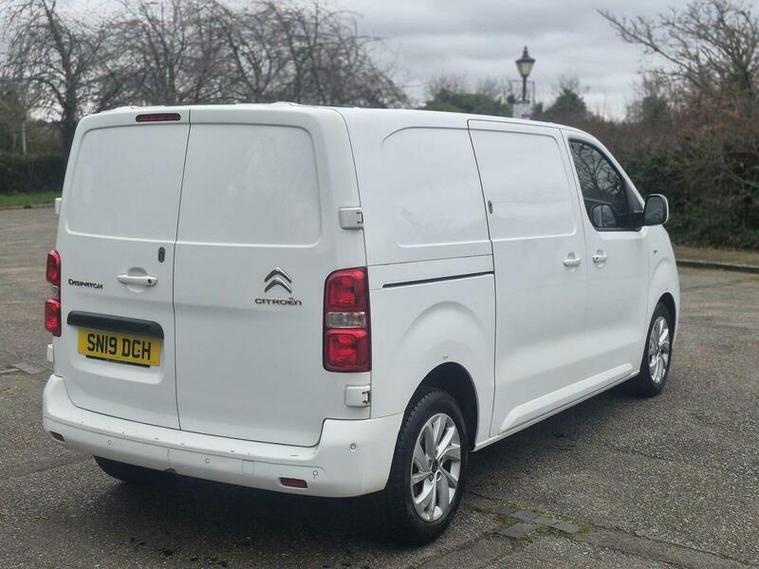 This 2019 Citroen Dispatch 2.0 BlueHDi 1400 Enterprise M FWD 2 Euro 6 (s/s) 6dr is a well equipped van, featuring a 2.0 litre diesel engine and a Euro 6 emission class. The Enterprise M trim level includes a Visibility Pack with automatic headlights, rear parking sensors for easier manoeuvring, and a Connect Radio with Bluetooth connectivity. For your comfort, it also comes with air conditioning.