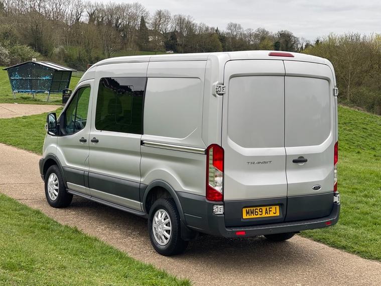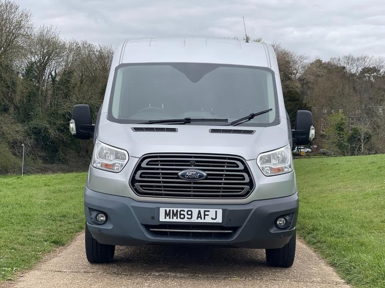 This 2019 Ford Transit 2.0 350 EcoBlue Crew Van FWD L2 H2 Euro 6 boasts exceptionally low mileage for its age, having covered just 33, 917 miles. This well maintained example comes with a clear vehicle history check and is powered by an efficient 2.0 litre diesel engine, meeting Euro 6 emissions standards. It features the Ford Connected Audio System with Bluetooth connectivity, and its door mirrors are equipped with blind spot eliminators and integrated side indicators, including Blind Spot Assistance for enhanced safety.