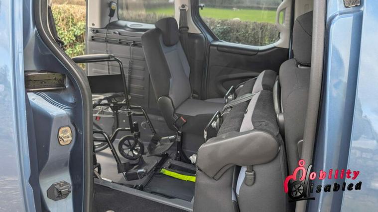 Converted by Allied, we have a lowered floor, manual wheelchair ramp (which does fold flat), winch, wheelchair securing straps, five seats (or three plus wheelchair)