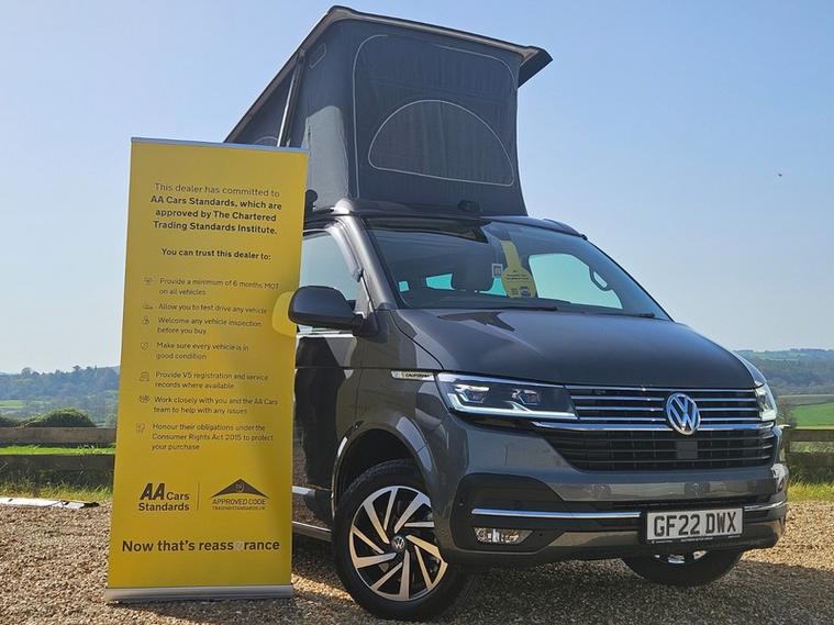 ** CLICK PLAY WATCH THE WALK ROUND VIDEO. VOLKSWAGEN SERVICE HISTORY + NEW SERVICE INCLUDED + 12 MONTHS AA BREAKDOWN COVER + 3 MONTHS NATIONWIDE MECHANICAL BREAKDOWN WARRANTY+ EXPERIAN HPI CHECKED + FULLY DETAILED INSIDE AND OUT. REYLANDS ARE PLEASED TO OFFER FOR SALE THIS GREAT VW CALIFORNIA automatic DSG WITH 4 BERTHS. IT HAS A ELECTRIC POP ROOF, STUNNING METTALIC PAINTWORK, DOUBLE BED AND ROCK AND ROLL BED DOWNSTAIRS with comfort mattress AND a lovely adition of a BranderUp thermo roof liner. You will also find being a VW California IT HAS A GREAT CONTROL MANAGMENT SYSTEM. This works the electric roof, fridge, diesel heater and settings. Standard it has hot air and a/c cold blow to the rear, lovely under counter lighting and factory front blinds as well as rear, RARE SHOWER, leisure battery, gas and electric hock up. All four seats have 3-point seat belts, and the front seats are swivelling captain chairs to make a great dining area when sited. These also are heated along with a/c, electric heated mirrors, front and rear parking sensors and reverse camera, blind spot monitor, phone mirror and blue tooth for the open road and both keys. when you are camping the California has all the mod cons VW fitted blinds, sliding rear windows, factory window tints to keep the camper cool, a fridge, gas stove and sliding table along with lots a clever storage and lighting up and down stairs. you have a clean water tank and a dirty water store with drain and electric hook up for when of site. This genuine VW camper has it all lastly a great VW awning with on board outside dining chairs with a great table which neatly stores away in this camper. Be quick so's not to be disappointed., Reyland's view by appointment please call 01460362719 to book a test drive. address for sat nav reyland car sales, Seavington, ta190qb, , Anti-theft Alarm System and Immobiliser. ***REYLAND'S OPERATE VIEWING BY APPOINTMENT ONLY*** Call Us on (01460362719**