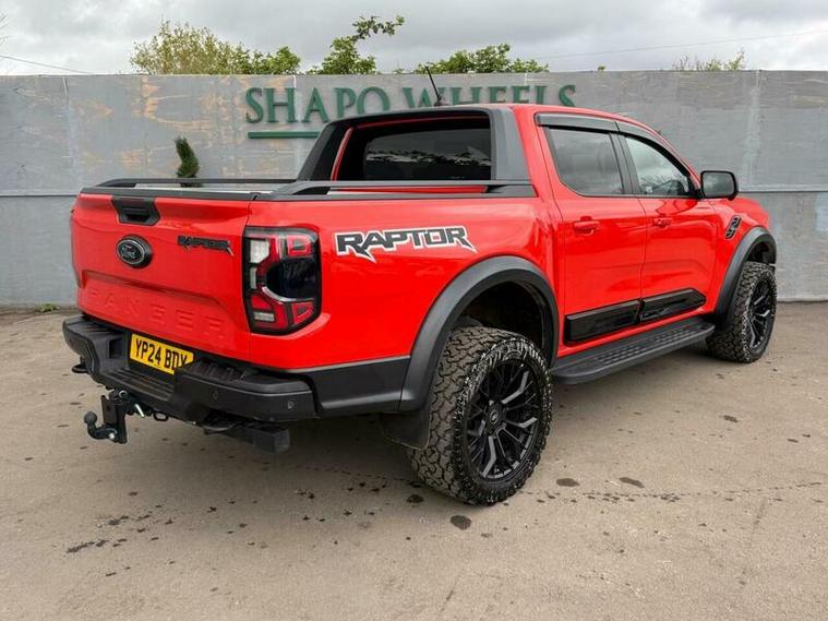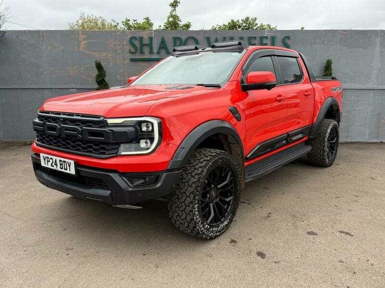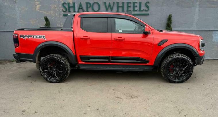Shapo Wheels Limited presents the Ford Ranger 2.0 EcoBlue Raptor Auto 4WD Euro 6 (s/s) 4dr + AUTOMATIC + DIESEL + 5 DOOR + HPI CLEAR + FULL SERVICE HISTORY + LAST SERVICED IN APRIL 2026 + FIRST MOT DUE 17/03/2027 + APPLE CARPLAY + NAV + BLUETOOTH + REAR & FRONT PARKING SENSORS + REV & FRONT CAMERA + 360 DEGREE CAM + HEATED LEATHER SEATS + HEATED STEERING WHEEL + TOW BAR + UPGRADED REAR BUMPER, UPGRADED SIDE STEPS, UPGRADED SIDES + UPGRADED ROOF LIGHTS + UPGRADED ALLOYS + UPGRADED WHEEL ARCHES + AUTO LIGHTS + AUTO WIPERS + AUTO FOLDING MIRRORS + ADAPTIVE CRUISE CONTROL + ULEZ COMPLIANT + SPARE KEY PRESENT.