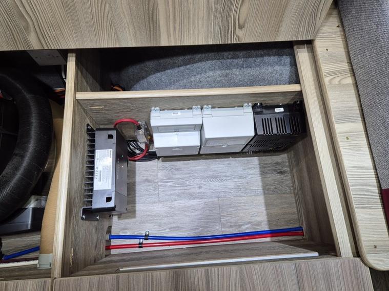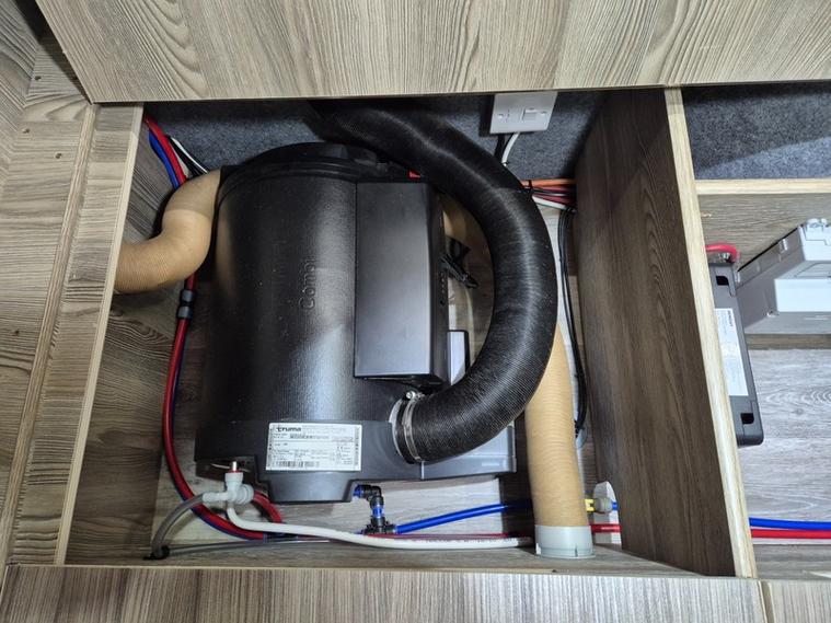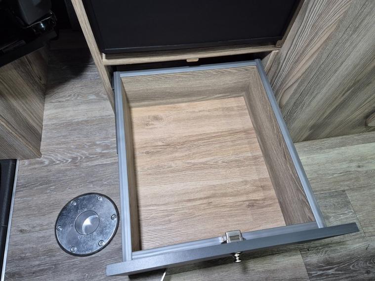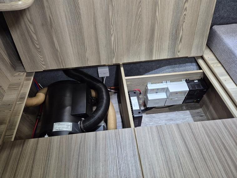 The Truma 2E Combi Gas and Electric Blown Air Water Heater manage heating and hot water. Control it through a digital thermostat with a timer for personalized comfort, utilizing gas, electric, or a combination of both. Conveniently located underneath the vehicle is the the 70L fresh water tank and 50L grey waste tank, made of premium-grade plastic to prevent freezing during winter use. Alongside these tanks there is an underslung 25L LPG Gas tank and an exterior gas BBQ point on the side of the vehicle adding to its functionality.