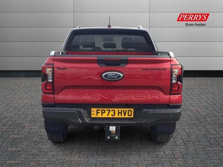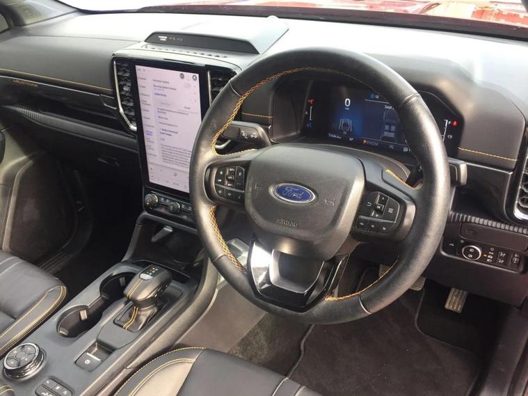 With only 11340 miles on the clock, this 2023 Ford Ranger is practically brand new. As a TD Wildtrak variant of the popular Ranger model, this vehicle boasts a Wildtrak trim and a powerful 2.0L diesel engine. The four-wheel drive drivetrain ensures reliable performance in various conditions, and it meets the Euro 6 emission standards. It comes equipped with a Trailer Tow Prep Pack, including a tow bar and wiring, plus a heated steering wheel for added comfort. This Ranger derivative, the 2.0 TD EcoBlue Wildtrak Auto 4WD Euro 6 (s/s) 4dr, has had only one owner and its MOT is valid until October 2026. This Ford Ranger stands out with its impressive 202 bhp engine power, offering a compelling blend of performance and efficiency. The fuel economy is around 32 mpg, making it an economical choice compared to other vehicles in its class. Furthermore, its low CO2 emissions make it an environmentally conscious option. Capable of towing up to 3500 kg, this Ford Ranger is well-equipped for heavy-duty tasks.