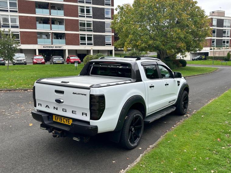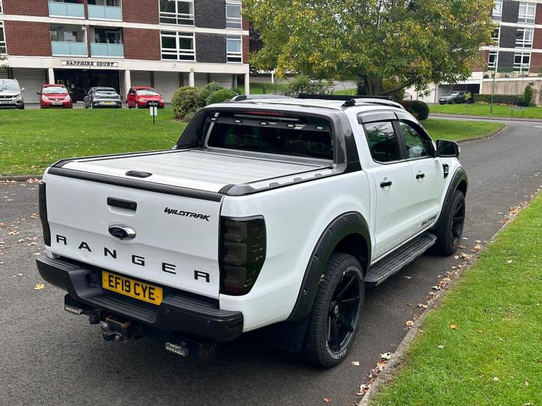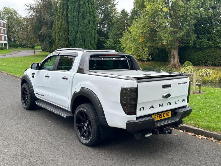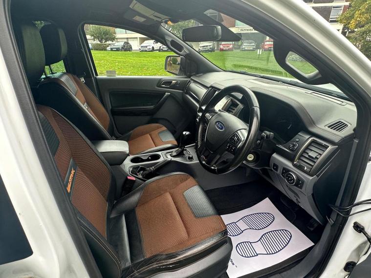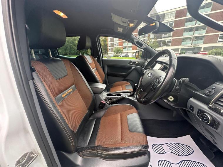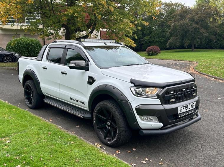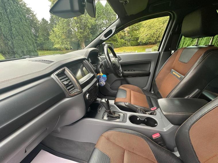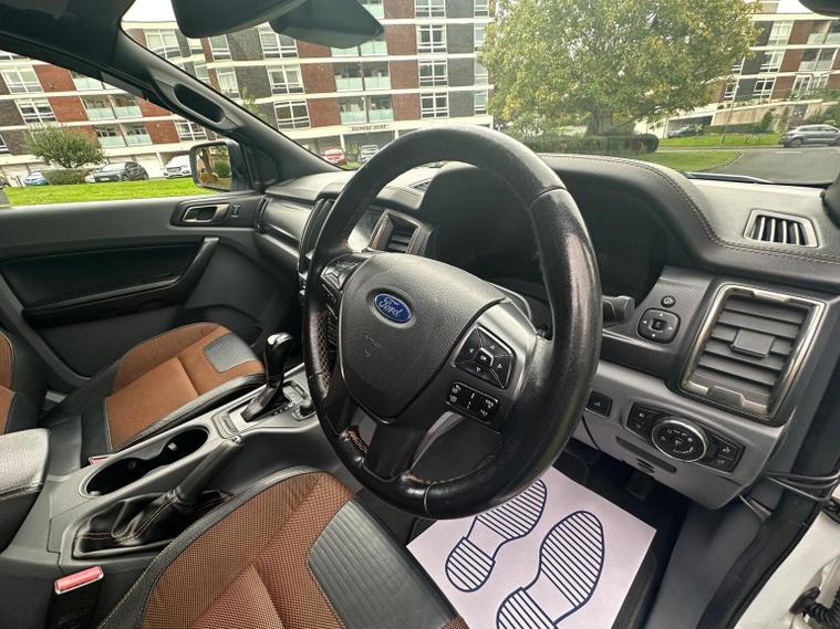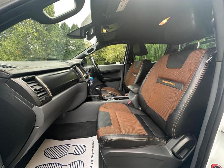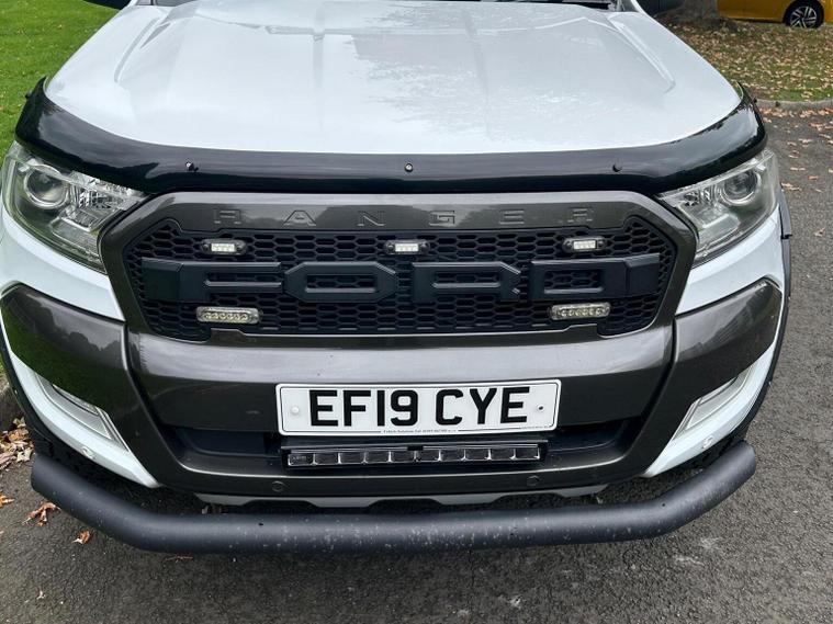 This 2019 Ford Ranger Wildtrak is a robust and capable pickup truck, ready for any challenge. Powered by a strong 3.2 litre TDCi diesel engine and featuring a reliable four wheel drive system, this automatic transmission model is built for performance. It boasts a substantial towing weight of 3500 kg, making it ideal for hauling trailers or equipment. The Wildtrak derivative comes equipped with a fixed towbar, front parking sensors for easier manoeuvring, and heated front seats for added comfort during colder journeys. Automatic headlights provide convenience and safety, while the Bluetooth handsfree system allows for seamless connectivity on the go. These features collectively enhance the Rangers practicality and user experience, setting it apart from other vehicles in its class.